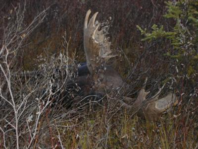 Knocks a 60" bull Moose down at 500 yards, so I'm sure it will do well with Elk. I guess I will really find out this Sept 2010. 2nd year of Elk draws in the Yukon and I get DRAWN!! I know the pictures a moose but it is the biggest bodied moose I have seen in over 20 years hunting the beast!
