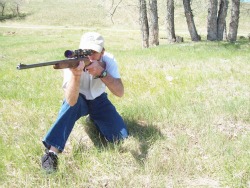 This gets you very low. If your belly is making that difficult, try sinking your elbows into the V formed by each knee. This all gets you very low and stable in the sitting position. You'll have to take your breaths before sinking in, since this low position limits your diaphragm. Tuck in the rifle butt tight, relax, breathe and squeeze properly asdescribed below.