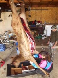 Now you’re ready to debone it or cut it up or take it to the butcher shop for processing. Consider cutting and wrapping it yourself. It’s not that difficult. Click here to see the Hunter's Meat Map that you can follow generally. You don't have to do it perfectly!
